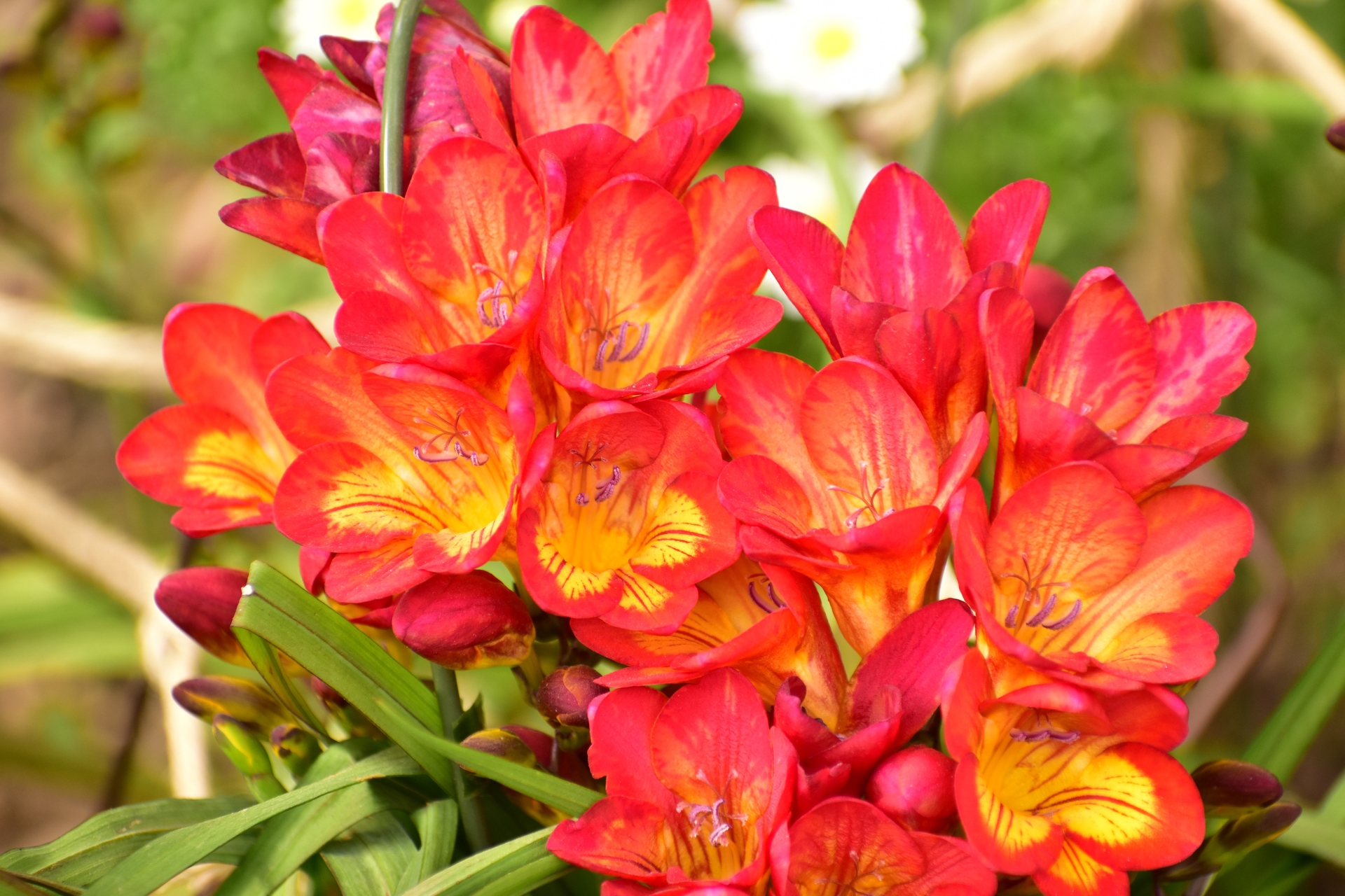 フリージアは早春頃花茎の咲きに弓なりに花を咲かせます。 先端に向かって蕾が順番に開花していきます。 品種によっては香りが強く爽やかな胡椒の様な香りも特徴です。 水揚げも良く切り花の